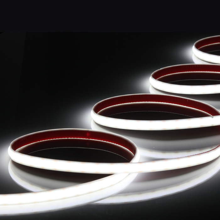 If you're looking for an LED strip that delivers clear brightness without glare and works well in tight or humid spaces, this 12V 6500K cool white COB strip is a solid choice. It uses a continuous COB light source with a flexible silicone diffuser, producing clean, even light with no gaps or dots. It's great for detailed lighting areas like vanity mirrors, under island counters, beneath cabinets, or along stair edges.