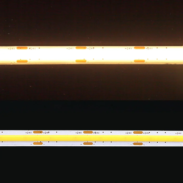 3000K Warm White 24V COB LED Strip Lights 3000K Warm White 24V COB LED Strip Lights use tightly packed LED chips to shine brightly and evenly, eliminating the dotted effect seen in traditional SMD strips. With a wide 180-degree beam angle, they provide broad, even light coverage. Each roll is 16.4 feet (5 meters) long and has lead wires on both ends for easy connection. These strips are dimmable with a compatible dimmer. The 24V design supports long runs. Power consumption is 15 watts per meter. The strips are cuttable and can be easily extended to 32 feet or 49 feet using the new connectors. Ideal areas for 3000K lighting: This warm color temperature is great for bedrooms, living rooms, and dining rooms—especially for ceiling lighting—where a relaxing, comfortable atmosphere is needed. It’s also perfect for accent lighting, highlighting artwork, or adding a warm glow inside bookshelves or display spaces. Looking for more choices? See the complete COB LED strip lights selection. See Other Parts in the Catalog for Power Supplies, LED Controllers, LED Strip Connectors, LED Strip Channels, and more accessories that we have selected for this LED strip. Specifications